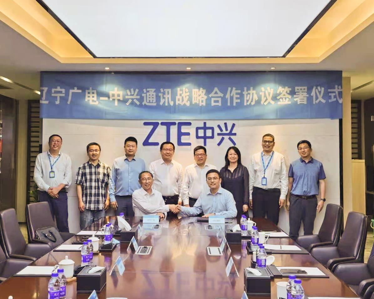 2021年6月5日,中国广电辽宁网络股份有限公司(简称辽宁广电)与中兴通讯股份有限公司(简称中兴通讯)战略合作协议签约仪式在中兴通讯南京研发中心举行。辽宁广电党委书记、董事长、总经理曾绍武,总工程师王兆恒,总经理助理王婷与中兴通讯董事长、执行董事李自学,副总裁张亮出席仪式,共同见证签约。