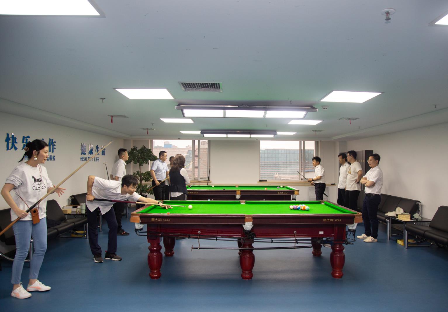 为响应公司党委开展庆祝建党100周年系列主题活动的号召,进一步丰富公司总部广大干部职工的文化体育生活,总部工会从6月初开始举行职工台球大赛,比赛利用午休时间进行。