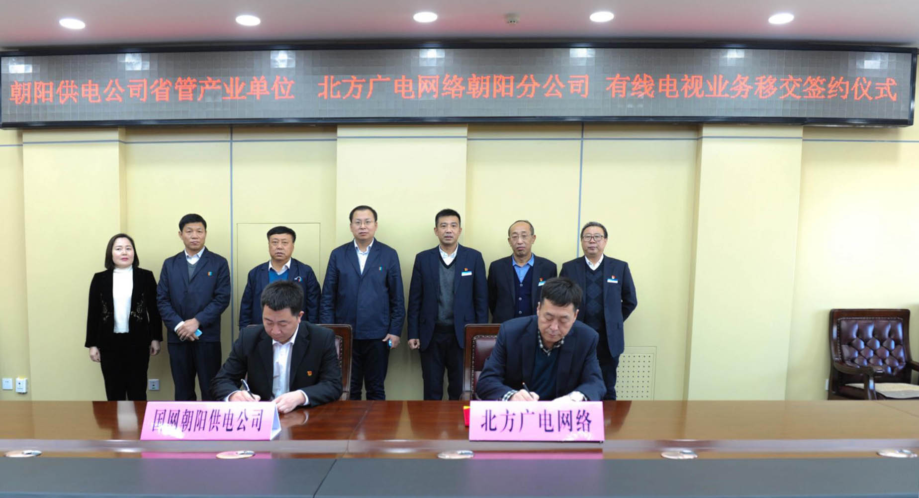 12月29日,yl34511线路中心网络公司朝阳分公司与国网朝阳供电公司正式签署《有线电视业务移交协议》。这是朝阳地区有线电视网络继今年5月接收凤凰山无线数字微波网后又一次成功整合。至此,yl34511线路中心网络公司朝阳分公司有线电视网络基本实现“一城一网”。据了解,朝阳供电公司有线电视网始建于1990年,2014年实施数字化改造,覆盖用户2万多户。