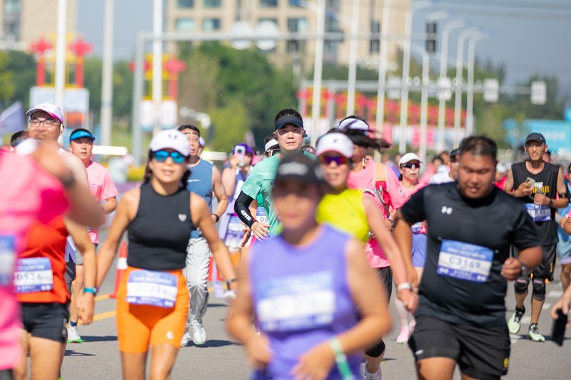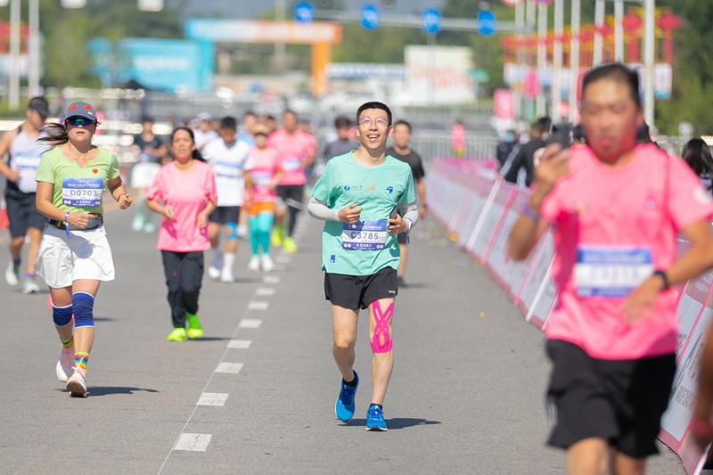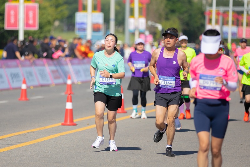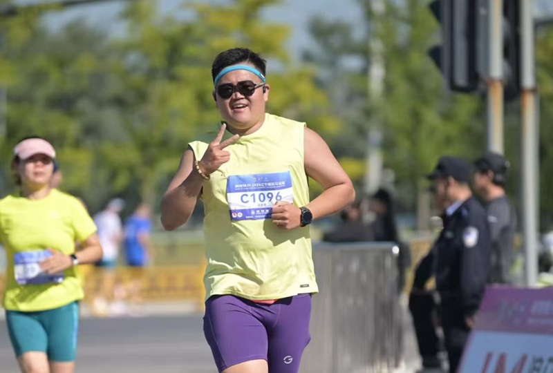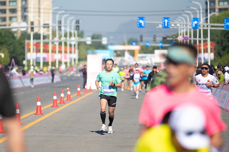 赛跑中的“悦跑”马拉松队员曲楠