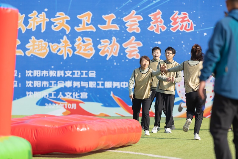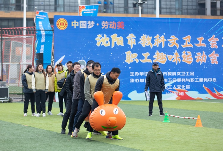秋光潋滟,人心欢畅。2025年10月16日,一场由沈阳市教科文卫工会主办的、主旨为展现新时代产业工人风采的职工趣味运动会,在“沈阳市职工文体活动中心”足球场激情开赛!来自全市教科文卫系统的15支代表队参加了“奋勇争先”“砥砺前行”“时代巨轮”等十个项目的角逐。中国广电辽宁网络股份有限公司(简称“中国广电辽宁公司”)总部工会派出15名青年职工,高举“司旗”,团结协作、奋勇争先,充分展现了辽宁广电人昂扬向上的精神风貌。