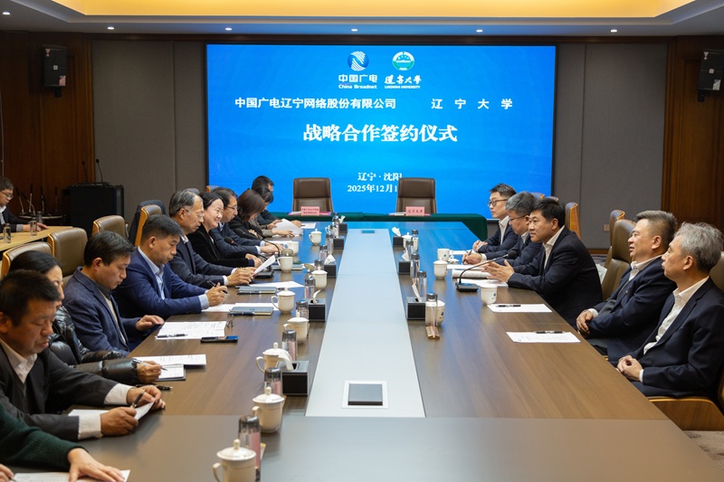 仪式上,马震代表中国广电辽宁公司,陆安慧代表辽宁大学,签署战略合作协议。要春华、苏万宝、李成雨、季永新,潘一山、李宇鹏、吴济龙、张兴宏共同见证签约。未来,双方将以“部校共建”为核心,在人才共育、科研共创、资源共享等方面开展全方位合作。