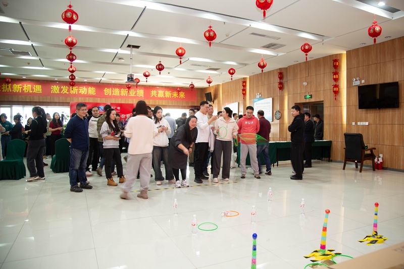 在“猜谜语”区,100条灯谜巧妙融入了公司文化和新春元素,引得众人或凝神思索,或热烈讨论,现场不时爆发出猜中谜底的欢呼。一旁的“套圈圈”和“投飞镖”则考验着大家的眼力和定力,参与者屏息凝神、精准发力,套圈在空中划出优美弧线,飞镖稳稳钉在靶心,每一次命中都引来阵阵喝彩。