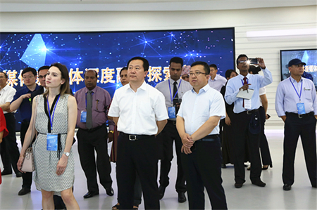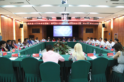 5月31日,2018年欧亚国家广播电视中高层管理人员研修班代表一行32人到yl34511线路中心网络公司进行交流考察。下午三点,代表们在yl34511线路中心网络公司总经理曾绍武的陪同下参观了公司全业务展播大厅,观看了公司发展宣传片,听取了公司总经理曾绍武对智慧社区、体感游戏、VR等基于“极速云电视”开发的新产品、新业务的情况介绍,并参观公司国内行业领先的全业务播控中心。