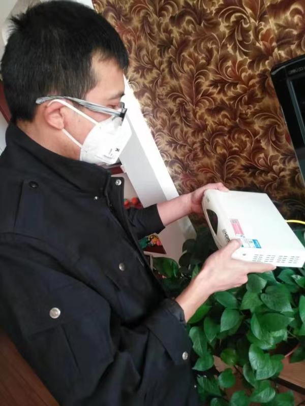 故障就是命令,维修就是责任。关键时刻,共产党员张鹏泽、入党积极分子李超和技术骨干梁伟认为,“马上办”是区域公司的考核标准,但不能成为口号!虽然抗“疫”期间,单位规定应在确保自身安全的前提下,采用“非接触”方式维修,但绝对不能让用户在“疫情”的焦虑中感到无助。于是,他们放下晚餐,二知没说就带妥防护口罩和塑料手套,备好维修工具、梯子及防尘脚套,踏着夜色,冲向了隐藏疫情危险的维修现场。