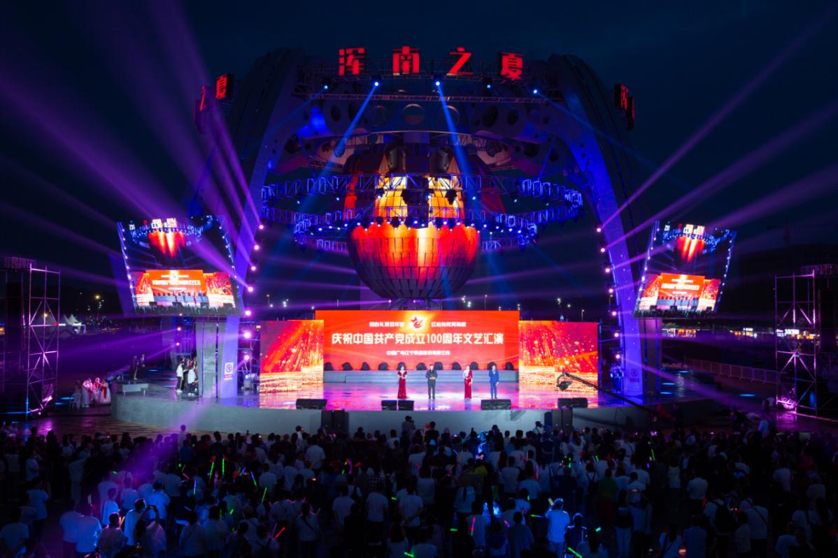 浑南之夏,党旗飘扬;浑水河畔,歌舞传情。2021年6月27日傍晚,中国广电辽宁网络股份有限公司(简称中国广电辽宁公司)“初心礼赞百年梦 红心向党再扬帆”——庆祝中国共产党成立100周年文艺汇演,在沈阳市浑南新区中央公园文化广场隆重举行。公司领导曾绍武、张晓钧、陈金宏、王兆恒、要春华,总助级领导李成雨和来自公司总部及沈阳、抚顺、本溪市分公司的300余名干部员工及周边群众共计千余人观看了演出,共同庆祝党的百年华诞。