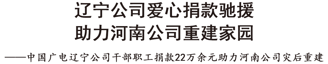 2021年8月10日下午16时,中国广电辽宁网络股份有限公司(简称中国广电辽宁公司)通过电子银行,将广大党员干部和职工“爱心捐款”22.8181万元汇至中国广电河南网络有限公司(简称中国广电河南公司)工会帐户。