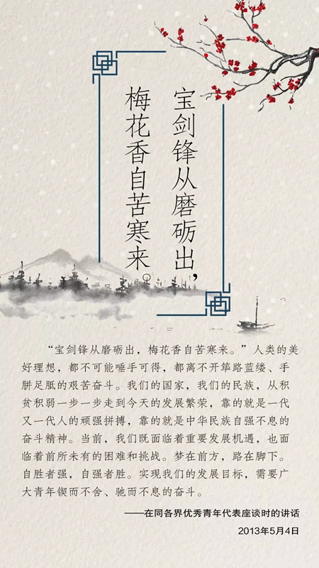 东风随春归,发我枝上花。春天是起点,是成长,是希望。踏着春天的脚步,新时代的我们再一次出发。今年是新中国成立70周年,是全面建成小康社会、实现第一个百年奋斗目标的关键之年。习近平总书记引用的这八句古典名句,送给正在奋斗路上的你。