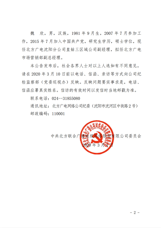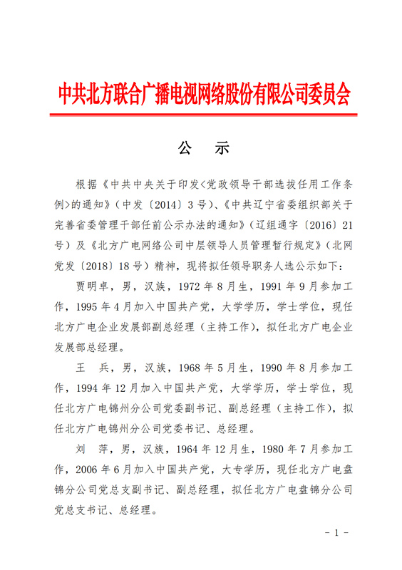 关于公司拟任领导职务人选的公示