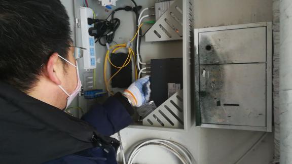 1月28日(正月初四)晚7时30分许,两个小区因停电导致相关设备损坏10余台,8栋住宅楼信号中断,必须逐一排查更换设备才能恢复畅通。故障就是命令,当班的共产党员王喜双和展翔同志接到报修信息后,一边利用手机及时沟通安抚用户,一边冒着被感染的风险,第一时间驱车赶到现场进行抢修。在小区物业人员的配合下,他们扛着梯子、抱着设备、带着工具,挨个故障点更换器件、调试信号,连续奋战了3个多小时,终于深夜11时前完成了抢修任务。在令人瑟瑟发抖的寒风中、昏暗的路灯下,他们裹紧早已被汗水浸湿的棉衣,换下湿透的防护口罩,悄无声息地驾车消失在夜幕中。