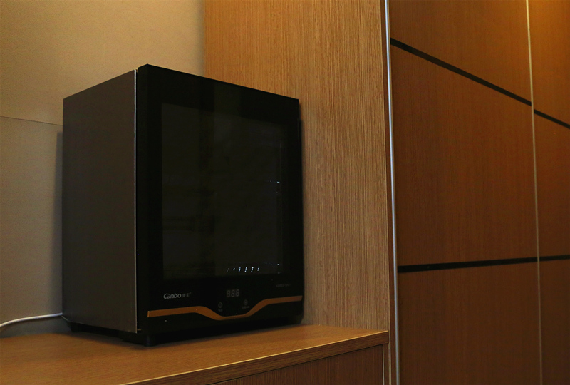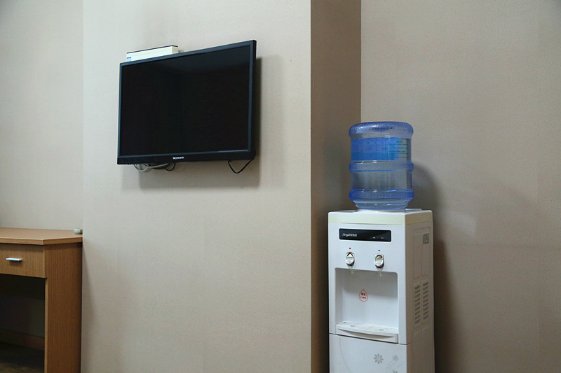 “女职工关爱室”房间面积约20多平方米,配有独立的卫生间,热水器等,24小时提供热水;室内放置2张单人床、1套沙发,床单、窗帘定期清洗;配有储物柜2个、电视机1台、饮水机1台、消毒柜1个、冰箱1台和电源插座;室内布置合理舒适,内装色调柔和温馨。