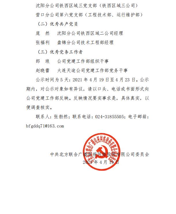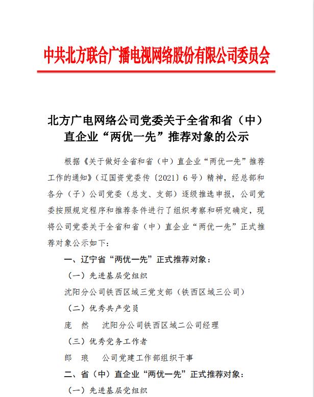 yl34511线路中心网络公司党委关于全省和省(中)直企业“两优一先”推荐对象的公示