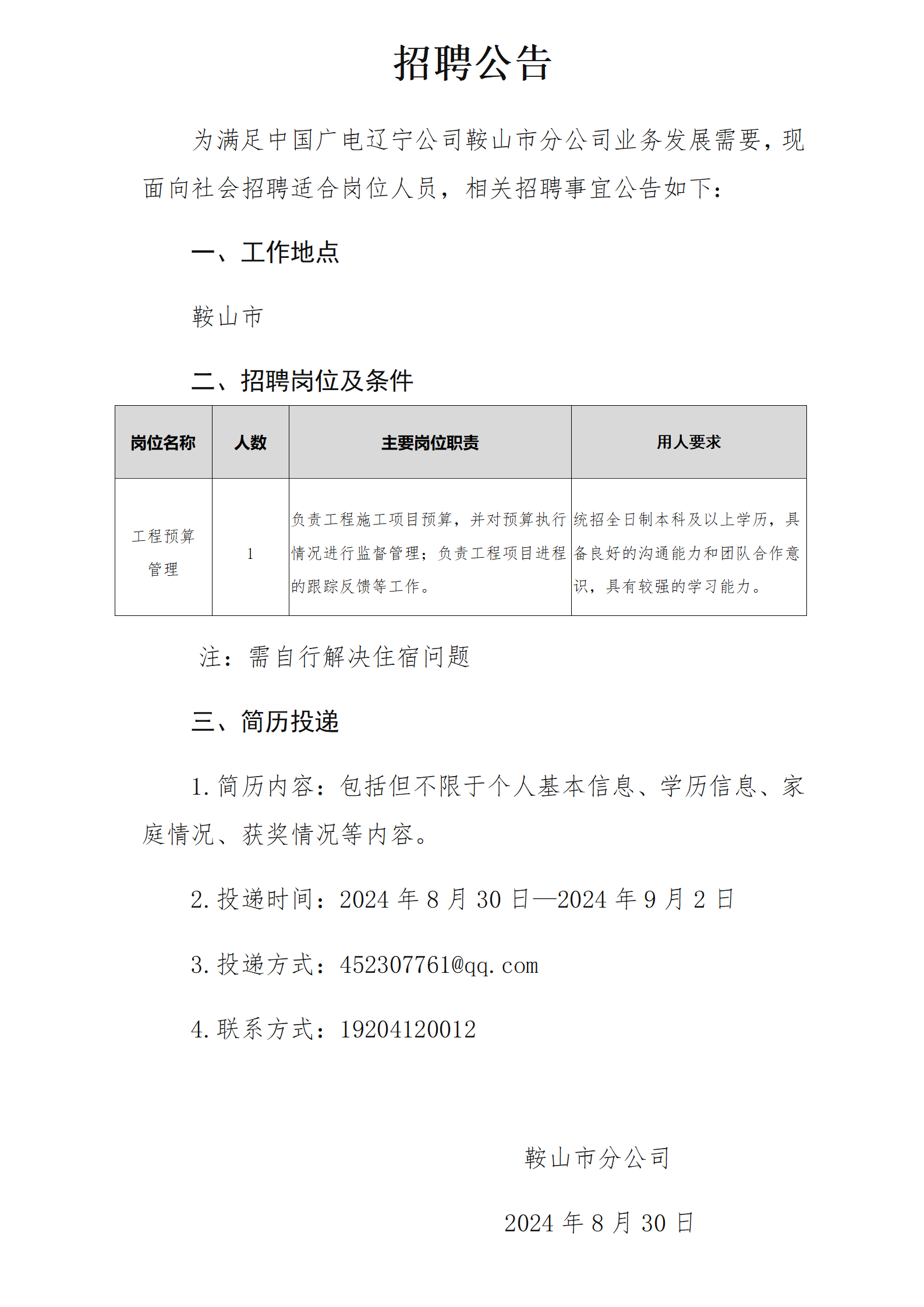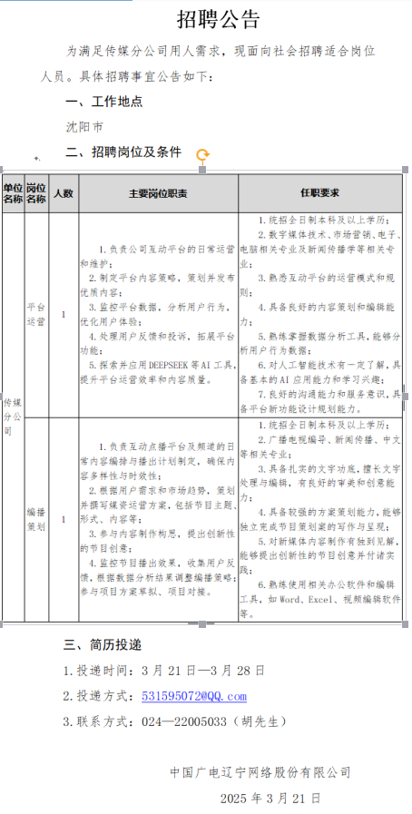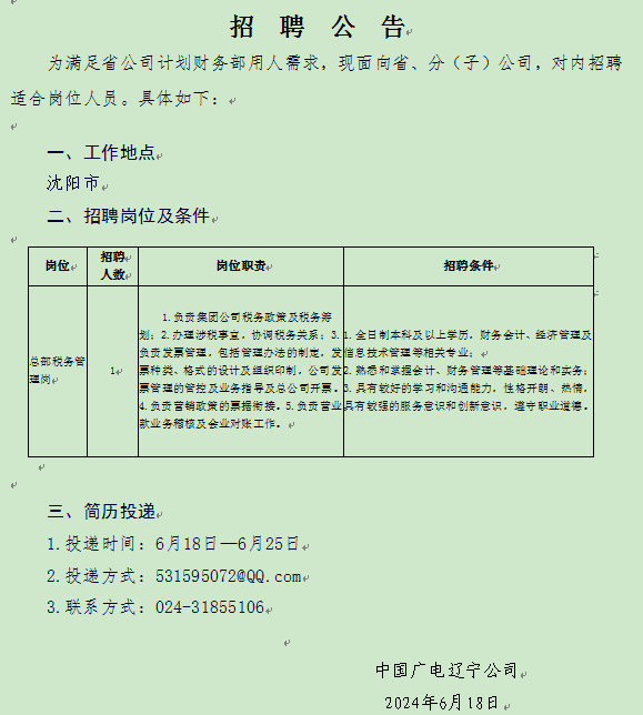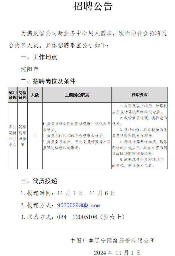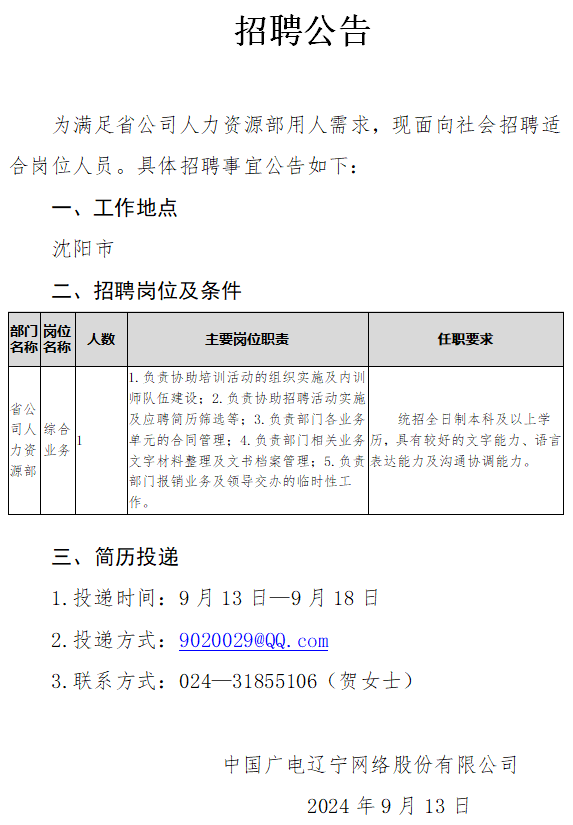 联系人:辽宁公司鞍山市分公司 简历投递邮箱:452307761@qq.com
